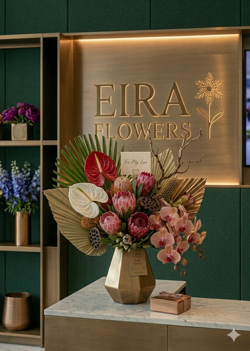 Tüm siparişleriniz, alanında uzman ekip tarafından en taze çiçekler kullanılarak büyük bir özenle hazırlanır. Her buket, Eira Flowers özel dokulu kurdelelerle zarif bir şekilde tamamlanır.